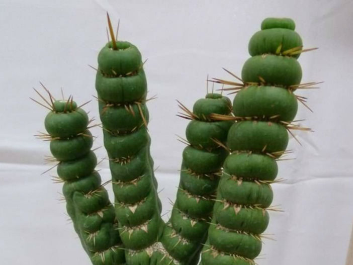 specimen: Eulychnia castanea cv. varispiralis spiral form. Garden origin. It is a variable cultivar of which we can distinguish at least four basic growing forms: Columnar monstrous form, Columnar discoidal form, Columnar spiral form, Crested form. Each plant is unique and different. more info, more info.
