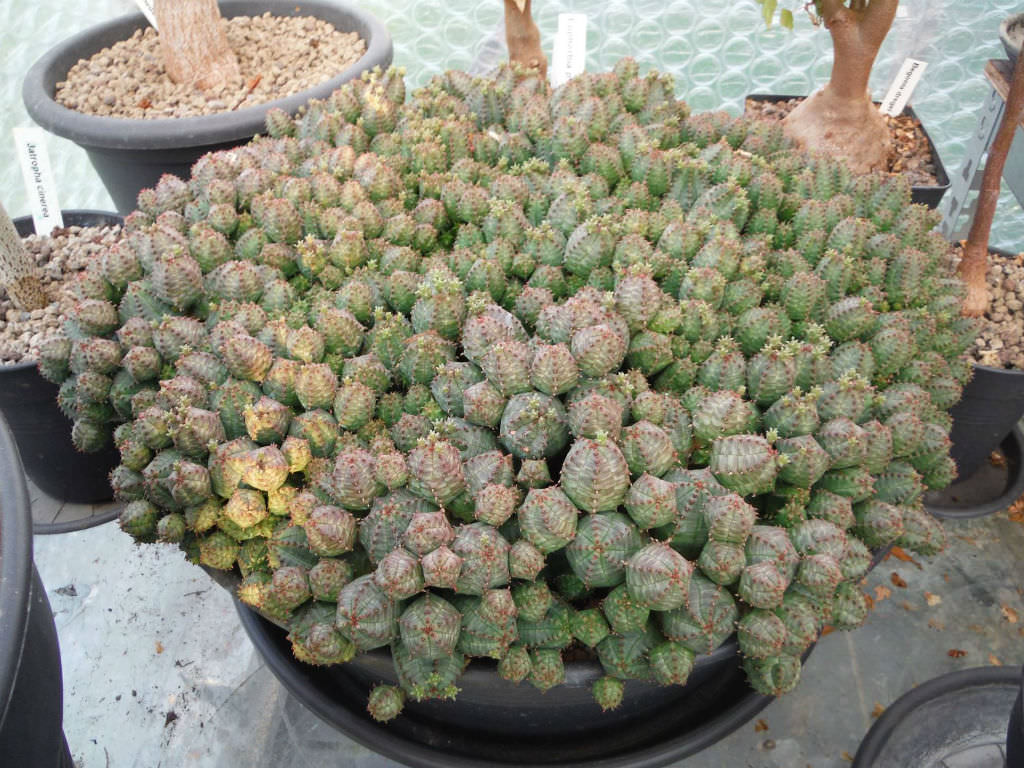 - Euphorbia is a huge genus composed of plants with milky sap. Those that are succulents range from marble-size spheres to 30-foot trees. Some species resemble cacti and are comparably efficient at storing water.