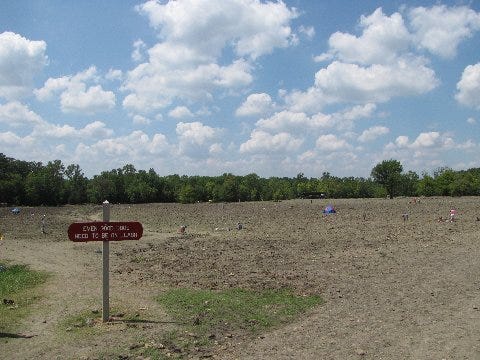 The Crater of Diamonds State Park turned out to be nothing like what I expected, and I can’t claim I didn’t know what to expect. Basically, I knew that I was not expecting a train car ride deep into some hollowed-out mountain, as I knew in advance from reading the park’s website that the ‘minefield’ was going to be 900 acres of plowed up farmland, but I guess I failed to register just how much ground 900 acres actually covered. Neither of us knew where to begin our search for diamonds with our midget shovels once we stepped outside the visitor building. Before us was a daunting amount of dirt and them out there weren’t actual hills, but humongous dirt mounds that were being created by people that evidently spent a greater portion of their lives digging at that park. It was impossible not to notice that all over the fields were solitary figures digging themselves holes with the apparent intent of reaching China. It was pretty obvious who the real gamblers were. If this oversized field of dirt was a casino, the deep hole digger was the type of person that played three slot machines simultaneously.