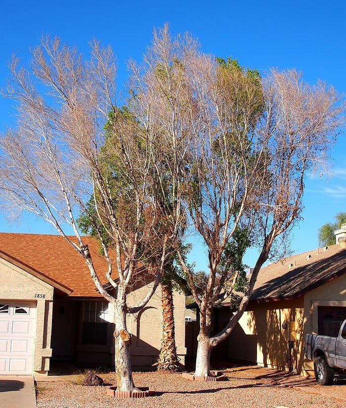 The following photos document a small sampling of what kind of trees won’t be able to thrive in a warming Phoenix, Arizona: