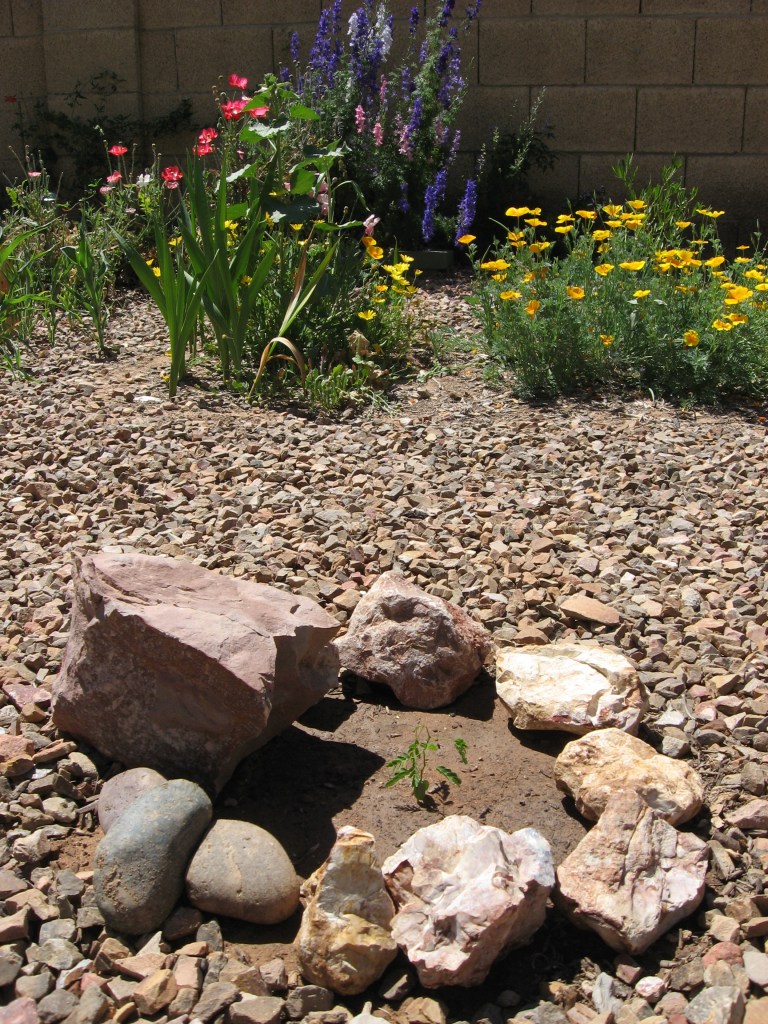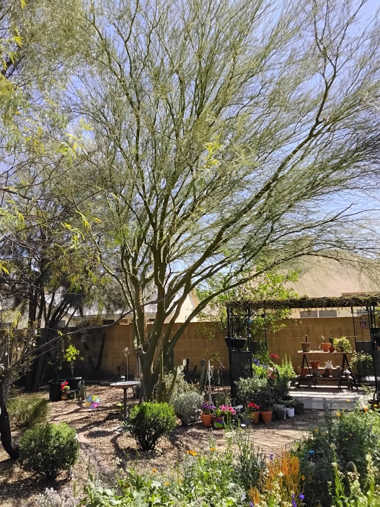 In the foreground was another Palo Verde I was growing from seed. The tree got gigantic, and I had to pull it out. It was making my yard way too shady (and it was growing too close to the house.) It cost me $200 to cut it down, and I hated to see it go. Also pictured are a pair of citrus trees that didn’t last two consecutive summers.