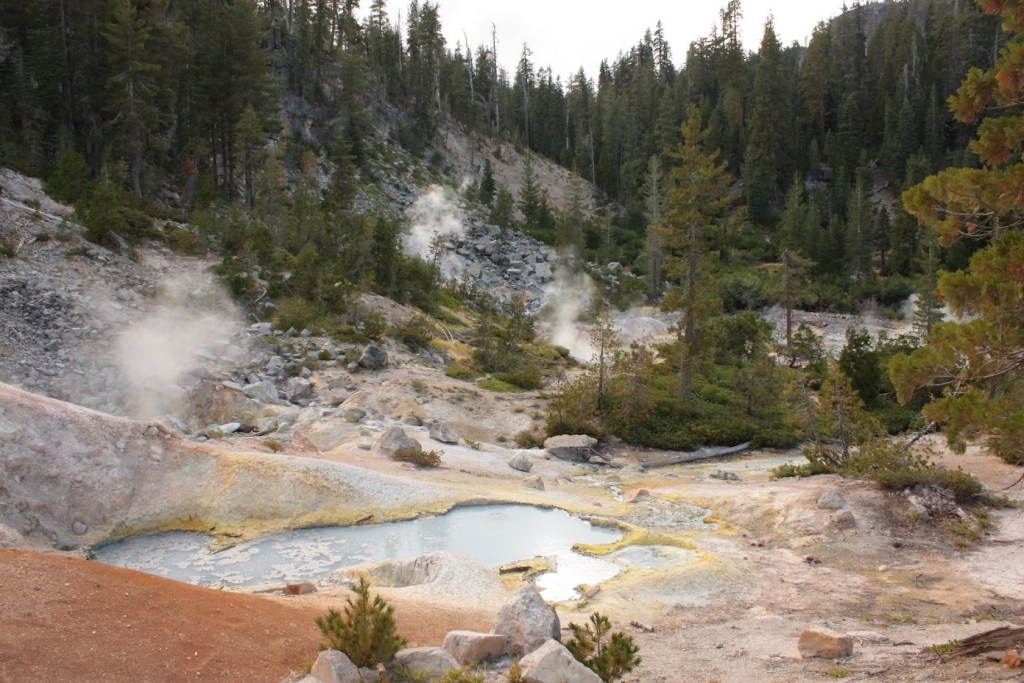 The source of heat for the volcanism in the Lassen area is subduction of the Gorda Plate diving below the North American Plate off the Northern California coast. The area surrounding Lassen Peak is still active with boiling mud pots, fumaroles, and hot springs.