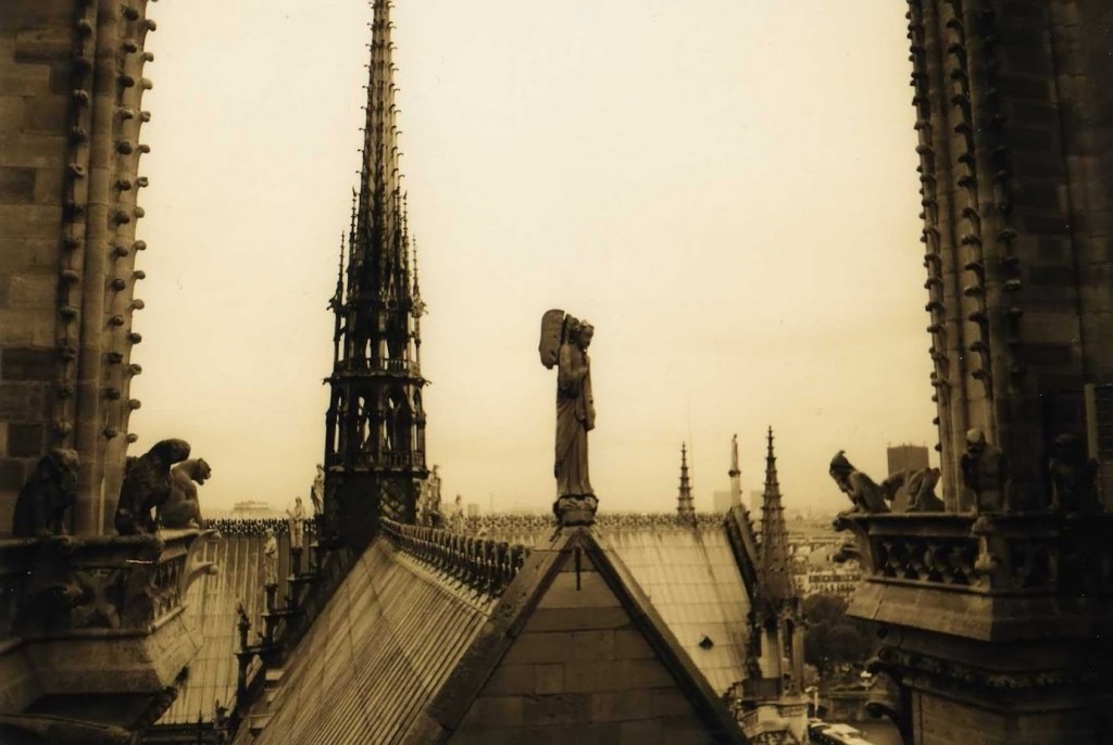 This is an image of the Notre Dame spire before it burned down. It looks like I took this photo in the 1800s, but I snapped it in the 1990s.