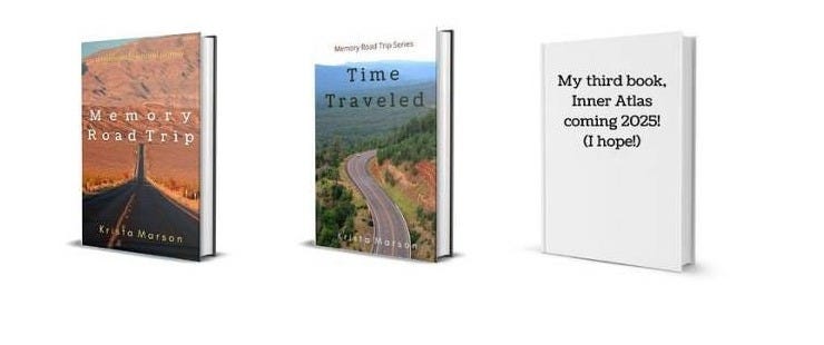 My books Memory Road Trip (e-book or paperback) and Time Traveled (e-book or paperback) are both available! You can also find them at most major international book sites.