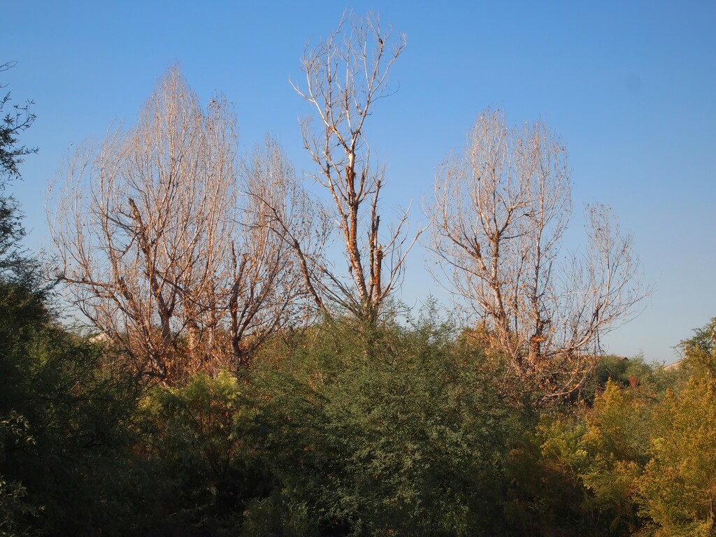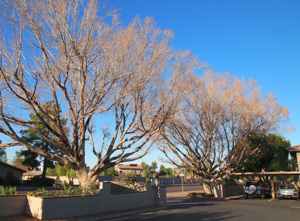 Dead Ficus trees. This tree is not native to the desert, yet they’ve been widely planted throughout the city. Many of them are now dead or dying. They are very big and conspicuous.