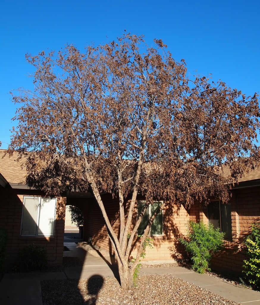 Pictured is a palo verde. It’s a native tree that thrives in the desert. It’s concerning to see these dead all over town.