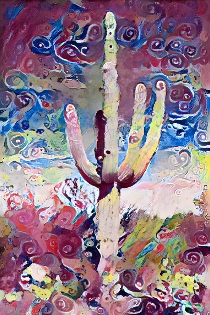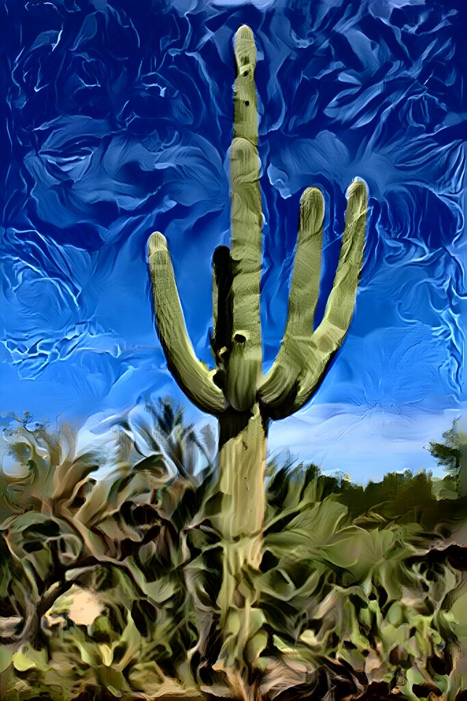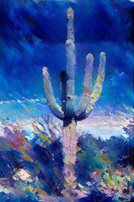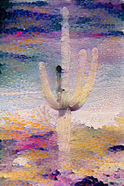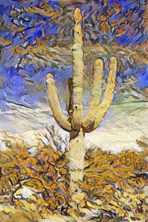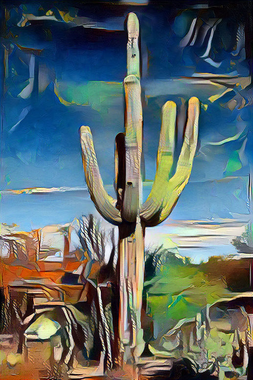 I normally post nature or travel shots, but as an experiment one month, I dabbled with an AI Art Generator website called Nightcafe. I stuck with one saguaro image and ran it through the AI generator once a day for 28 days in February. It ended up being really fun!